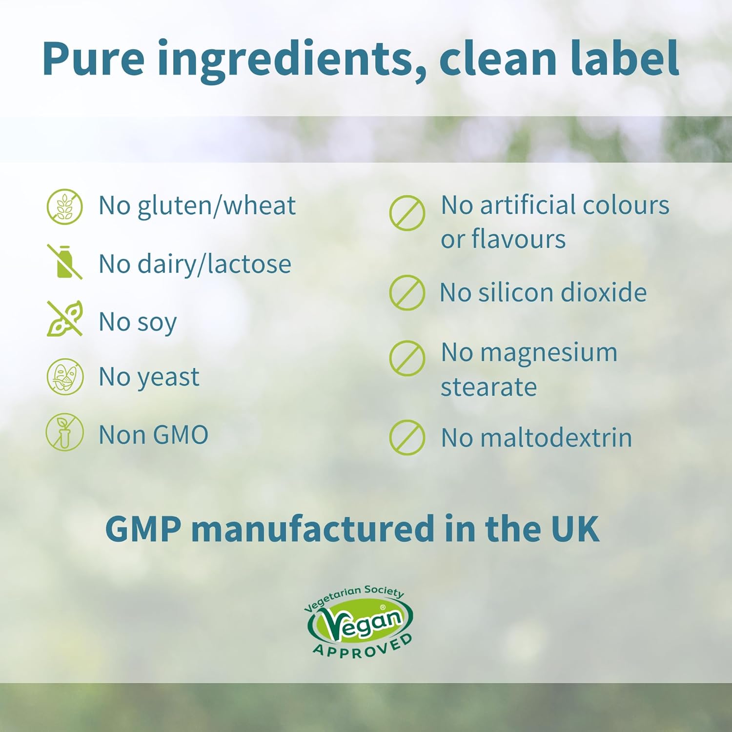 • Vegan & Clean Formulation: 100% vegan-friendly and typically free from major allergens, GMOs, artificial colours, and unnecessary fillers, meeting the highest standards of clean supplementation.