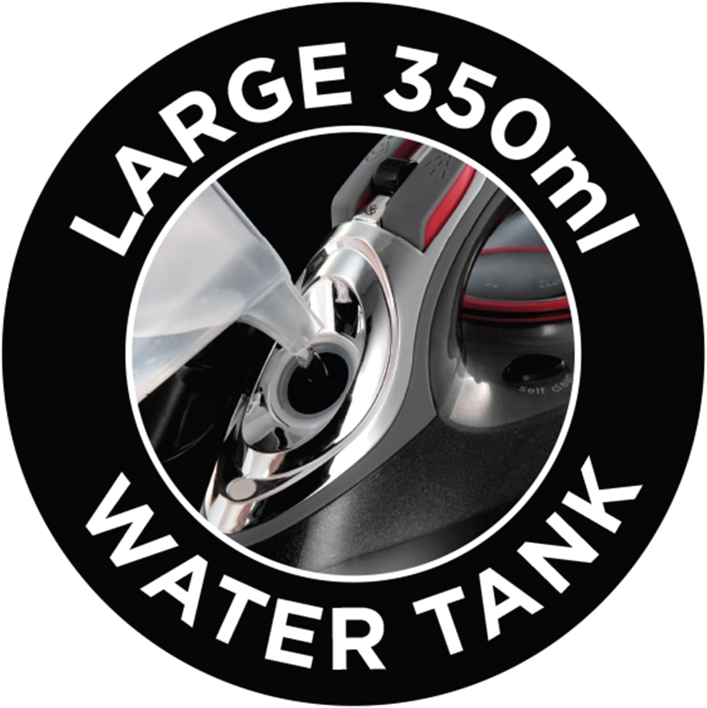 - Large Water Tank: The iron features a large capacity water tank (e.g., 350ml or more). This generous size means you can iron for longer periods without the disruptive chore of constantly refilling the tank, maximizing workflow and efficiency, especially when dealing with large loads of laundry or heavy steaming tasks.